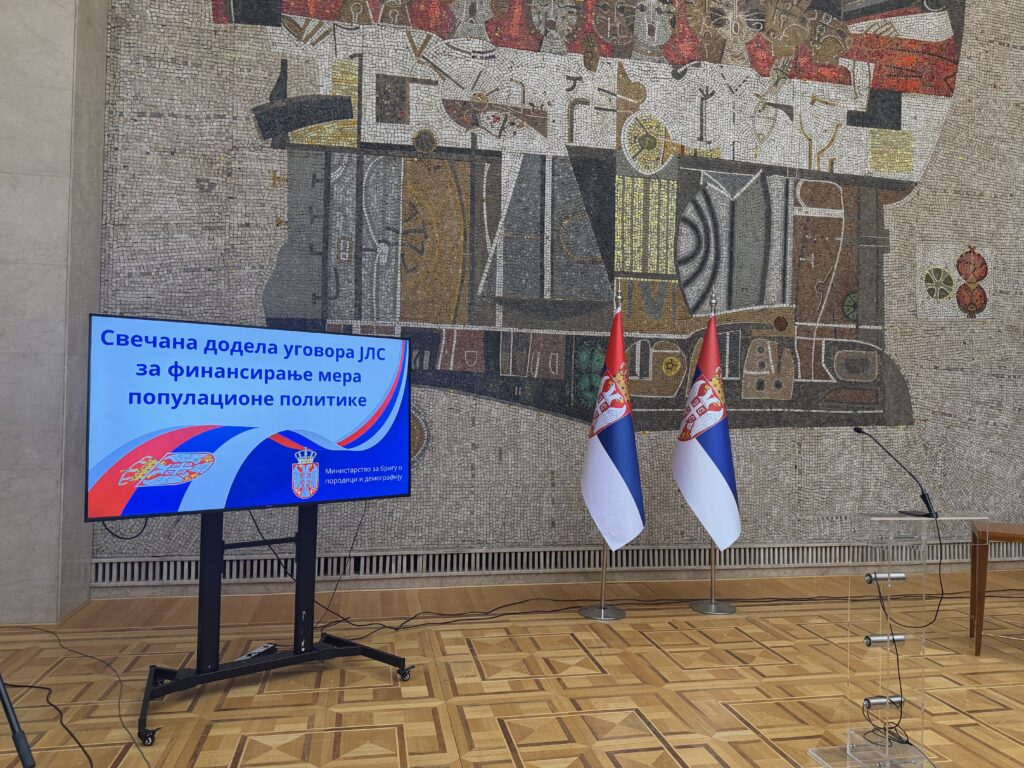 Министарка за бригу о породици и демографију у Влади Републике Србије Јелена Жарић Ковачевић уручила је данас уговоре јединицама локалне самоуправе за суфинансирање мера популационе политике и подршке породицама и деци у 2026. години.